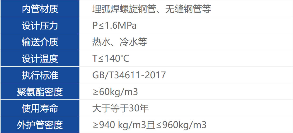 硬質(zhì)聚氨酯噴涂聚乙烯纏繞預(yù)制直埋保溫管由輸送介質(zhì)的工作鋼管(芯管)、聚氨酯硬質(zhì)泡沫塑料保溫層及聚乙烯外護(hù)層組成。保溫層厚度和外護(hù)層厚度在生產(chǎn)時(shí)可以根據(jù)需要在一定范圍內(nèi)任意調(diào)整。